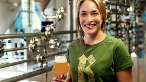 Responsabile del birrificio di prova Bitburger e vera esperta di luppoli