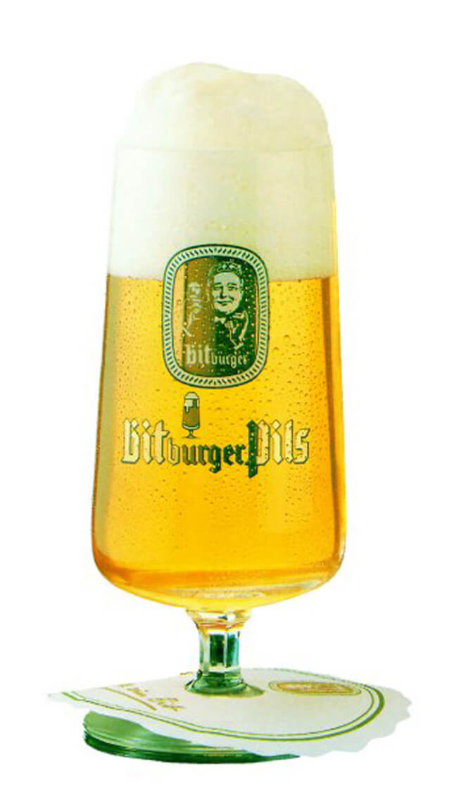 Bitburger crea con la “coppa Bitburger” il primo bicchiere esclusivo nel settore della birra assumendo così un ruolo di precursore. Il bicchiere è un calice proporzionato su un gambo esagonale, che sottolinea il carattere e l’unicità della Pils Bitburger.