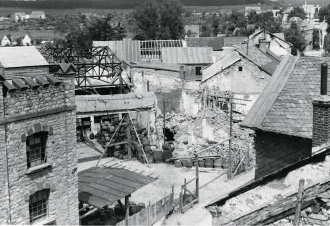Verso la fine della guerra le bombe degli aerei degli alleati riducono la città di Bitburg ed il birrificio in macerie e cenere. Gli impianti di birrificazione vengono distrutti e quasi tutte le botti in legno per il trasporto sono inutilizzabili.