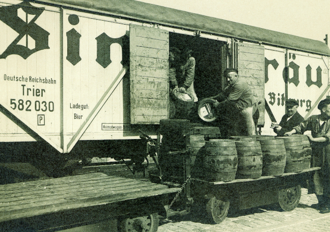 Dopo il collegamento di Bitburg alla rete ferroviaria, il birrificio acquista i primi vagoni ferroviari isolati per il trasporto della birra. Questi garantiscono la qualità della birra anche su lunghi tragitti.