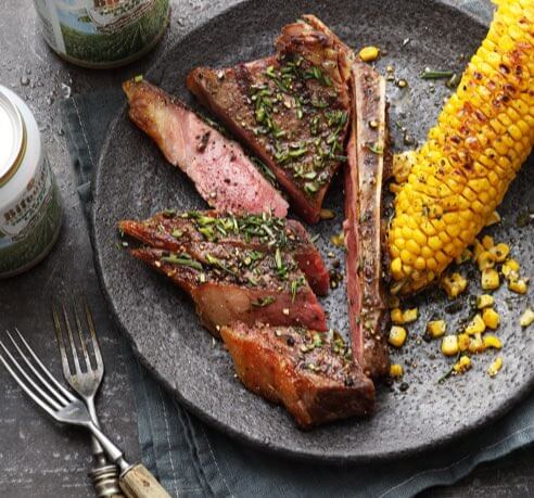 Bistecca alla newyorkese Bitburger con pannocchia di mais alla griglia