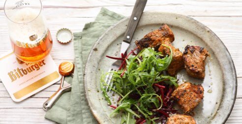 Spiedini churrasco con insalata di rafano e vinaigrette alla Kellerbier