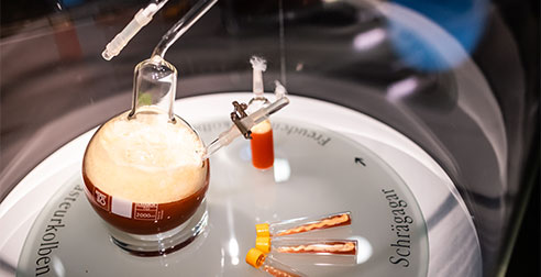Il malto frantumato viene riscaldato gradualmente insieme ad acqua nel tino di miscela. Gli enzimi naturali contenuti nei chicchi del malto trasformano gli amidi non solubili del cereale in zucchero di malto solubile. Alcune ore più tardi, dopo l’aggiunta di lievito, questo zucchero viene trasformato mediante fermentazione in alcol e anidride carbonica. I singoli livelli di temperatura, detti “pause di temperatura” variano a seconda delle condizioni del malto. Ciò consente di riequilibrare le variazioni qualitative stagionali delle materie prime impiegate garantendo alla birra una qualità che dura nel tempo. Una parte della miscela viene riscaldata nella cosiddetta caldaia di cottura allo scopo di definire con precisione aroma, colore e dolcezza.